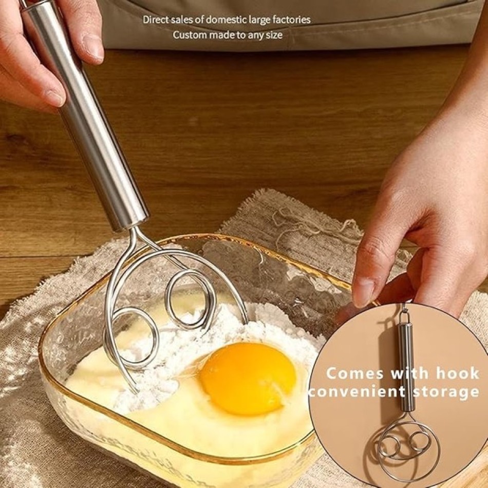 Ekmek, pizza hamuru, kurabiye veya poğaça yaparken ellerinizin hamura bulanmasından sıkıldınız mı? Paslanmaz Çelik Hamur Karıştırıcı, hamur malzemelerini zahmetsizce birleştirmek için özel olarak tasarlanmıştır.